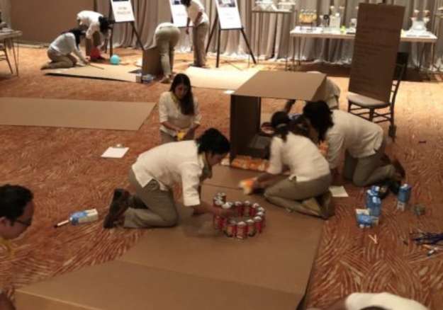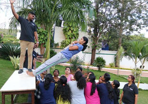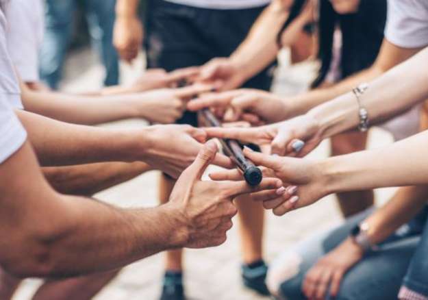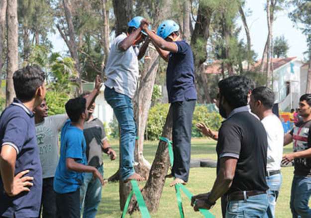 Ring stack is a fantastic team building activity where team members combines to hold each other to stack the rings on the