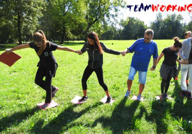 The process of encouraging members of a group to work well together, for example by having them take part in activities or games: The company puts a lot of emphasis on cooperation and team building, a team-building exercise/course, Groups of people, alliance.