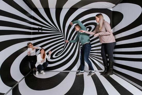 We were founded as a place to let the mind soar through a world of optical illusions! Imagination is encouraged as you become one with the art, challenging the eye as you interact with our creative exhibits!